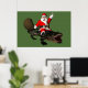 Poster Père Noël Festif Montant Un Alligator