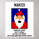 Image amusante de Père Noël avec un regard choqué sur le visage. Texte : Briser RECHERCHÉ et entrer. Cruauté envers les animaux. Employez des travailleurs illégaux. Vol de petits produits de boulangerie et de produits laitiers. Super idée cadeau de vacances!