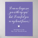 Cette belle pancarte mémorielle pervenche violette et blanche est un moyen approprié de se souvenir et d'honorer celui qui est parti, mais que vous aimerez et vous souviendrez toujours. Elle comporte le texte "Je ne peux plus vous voir avec mes yeux, mais je peux vous sentir dans mon cœur pour toujours" avec un cœur et votre texte en bas.
