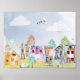 Petite affiche paysagère de maison. Village de maisons dans un style naïf mignon. Un grand ajout à votre décoration murale, pour une chambre pour enfants ou une crèche, ou toute chambre dans la maison.