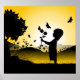 Poster Petite fille avec silhouette fleurie