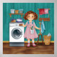 Une petite fille devant une machine à laver, prête à aider avec la lessive.