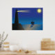Poster Phare et voilier à Night Moonlit Ocean