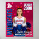 Affiche de sport personnalisée pour athlète senior, meneur de claque et joueur de sport. Ce modèle de conception personnalisable est parfait pour la décoration d'un événement sportif de rentrée scolaire, d'une soirée senior, d'un banquet de remise de prix sportifs ou d'une fête de fin d'études pour votre fils, fille ou étudiant athlète. C'est un excellent moyen d'afficher le portrait du joueur et les souvenirs de leurs parties sportives. La conception comporte un fond abstrait et peut être personnalisée avec des noms, le numéro de maillot du joueur, les équipes scolaires ou tout texte personnalisé. Cela fait un cadeau unique et significatif ainsi qu'une décoration pour votre joueur.