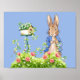 Pierre Lapin dans son jardin vérifiant sa maison d'oiseau.