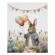 Pierre le lapin dans sa veste bleue avec ballons colorés et fleurs sauvages