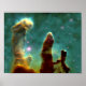 Ceci est une reproduction d'une superbe image des Piliers de la création prise par le télescope spatial Hubble. Ce sont des colonnes de gaz d'hydrogène interstellaire froid qui sont des incubateurs de nouvelles étoiles. Les nœuds à l'intérieur et à la surface des colonnes sont connus sous le nom de globules gazeux en évaporation et peuvent se condenser encore plus en nuages de gaz de plus en plus denses qui s'enflamment en nouvelles étoiles avec chaleur et lumière thermonucléaires. Ces colonnes sont à 7000 années-lumière de la terre et se trouvent dans la nébuleuse de l'Aigle. L'image a été diffusée en novembre 1995.