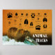 Pistes animales de l'ours brun et noir, du loup, du chat, du lynx, du cerf à queue blanche, du castor, du coyote, de l'opossum, du cerf, de l'écureuil gris, du mouton dall, du caribou, de l'orignal, de la loutre, du corbeau et du renard rouge. Photo de l'ours par Matthews, avec l'autorisation de National Pittoresque Byways Online. © HTM Images