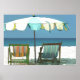 Poster Plage balnéaire, chaises et parapluie