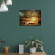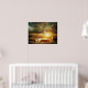 Sirène dormant sur le sable sous une lune et des étoiles croissant. teintes d'or, vert, bleu et ambre. Très élégant.