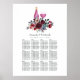 Plan de siège floral pour dégustation de vins bohème tendance pour enterrement de vie de jeune fille avec des accents de bourgogne et de marine, personnalisable selon les spécificités de votre événement.