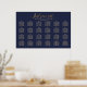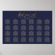Plan de table avec police de calligraphie moderne PixDezines en or faux et fond DIY, bleu marine. Police et couleur de fond DIY. Plan de table pour 24 tables.