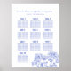 Poster plan de table d'art dessiné bleu mariage chrysanth