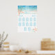 Plan de table PixDezines, avec un océan bleu turquoise et une plage de sable blanc, des guirlandes lumineuses et la silhouette d'un lustre blanc. Nous avons accentué avec des étoiles de mer vertes menthe et orange corail amovibles. Les conceptions de PixDezines vous permettent de modifier tout élément du design.