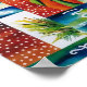 Poster conçu à partir de ma peinture d'aquarelle géante d'une planche de surf orange vibrante, de l'océan, des vagues et des palmiers.