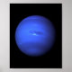 La planète gazeuse Neptune brille un beau bleu sur cette image prise par le vaisseau Voyager 2 de la NASA. Les caractéristiques comprennent une grande tache sombre et une tache brillante qui sont des nuages dans le ciel de Neptune. L'atmosphère de cette atmosphère est principalement l'hydrogène et l'hélium avec des traces d'autres éléments. Neptune passe devant Uranus et les autres planètes et est maintenant considérée comme la planète la plus connue du Système Solaire.