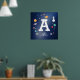 Joli affiche de monogramme personnalisé bleu marine avec les différents objets spatiaux. Vous pouvez facilement déplacer tous les objets (ou modifier la taille de la lettre) dans l'outil d'édition.