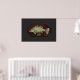 Cette image présente un trophée mural de basse rayée montrant une basse rayée d'eau douce portant un nom sous le poisson qui est monté sur une plaque en bois.