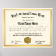 Poster Plaque d'or Diplôme d'études secondaires, école à