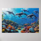 Poster Pod de dauphins dynamiques et poissons - Récif de