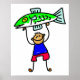 Un joli dessin humoristique représentant un joyeux petit garçon à la figure en bâton tenant le gros poisson qu'il a attrapé en pêchant. Customisez facilement et choisissez votre propre couleur arrière - plan ou ajoutez du texte. Image disponible sur divers cadeaux et produits.