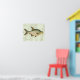 Cette impression artistique illustre une peinture détaillée d'un poisson d'eau douce. L'arrière - plan est une carte vintage de couleur aquatique claire. Ce design s'adapterait parfaitement à tout produit de votre collection de pêche.