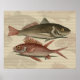 Gravure sur poisson d'origine de perche rouge, ou sébaste - Ce cadeau de pêche est basé sur une gravure de couleur ancienne de Mark Catesby (British, 1679-1749). La belle gravure de poisson est de "L'Histoire Naturelle de Carolina, Floride et les îles Bahama", Londres, édition 1754. La gravure vintage sur le poisson s'intitule "Perca rubra & C". La perche rouge est un nom commun de poisson qui fait référence à plusieurs espèces de poissons. Le Percua est en fait la Perche commune, un petit poisson de gibier merveilleux, qui vit généralement en eau douce. Le tambour rouge qui habite l'eau salée est aussi souvent appelé sébaste ou perche rouge. L'image vintage de la perche rouge montre deux poissons qui se baignent l'un l'autre, le poisson du fond est rouge tandis que la perche supérieure est gris et rouge. Dans beaucoup de nos cadeaux de poissons perches rouges, il y a un arrière - plan qui montre des images légères de poissons qui nagent à côté, et coiffé d'une touche de calligraphie qui parle de perches rouges.