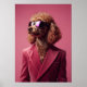 poodle, dog art, funny animals, pink suit, sunglasses, velvet blazer, stylish pet, fashion art, modern, pop art, vibrant, cool dog, humorous, pink decor, maximalist, animal portrait, chic, wall art