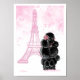 Poster Poodle noir avec tour Eiffel rose