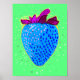 Fraise bleue vive sur un arrière - plan vert dans le style Pop art. Pour les amoureux de l'Art Contemporain & Pop.