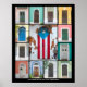 Une collection colorée de portes trouvées dans le Vieux San Juan, Porto Rico. Les portes au milieu sont peintes avec le drapeau de Porto Rico