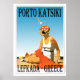 Une affiche rétro qui n'a jamais existé jusqu'à présent. Une recréation d'une vieille affiche. Scène de style vintage de la plage de Porto Katsiki de l'époque art déco. Couleurs vives avec une femme sur la plage bronzage avec une couverture rouge et un casquette à pois de style flapper. Exclusivement par Zazzle.com/Retro_Art Store.