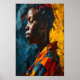 Cette affiche abstraite générée par l'IA présente une fusion époustouflante d'expressionnisme et d'art contemporain. Les touches audacieuses et les contrastes de couleurs complexes (bleus riches, jaunes enflammés et rouges profonds) créent une représentation émouvante et frappante d'une femme dans le profil. Cette pièce respire la force et l'individualité, ce qui en fait un complément exceptionnel à la décoration d'une maison moderne. La texture dynamique imite la peinture à l'huile traditionnelle tout en embrassant les possibilités infinies de l'art numérique. Cette oeuvre célèbre la beauté culturelle et le pouvoir d'expression à travers l'art, ce qui la rend parfaite pour personnaliser les espaces avec chaleur et profondeur. Pièce captivante pour les salons, les bureaux, les studios d'art ou les galeries, cette création unique est également un excellent cadeau pour les amateurs d'art, les anniversaires, les ménagères et autres occasions spéciales.