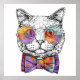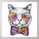 Chat dessiné à la main avec lunettes de vue et botte sur l'affiche