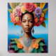 Image d'une princesse africaine botanique avec bijoux en argent, feuilles et fleurs. C'est une image créée par AI avec un design à thème floral.
