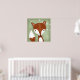 Un tableau numérique d'un renard capricieux est visible contre l'arrière - plan vert à grains de bois. Des petites fleurs blanches sont visibles sur les vignes accrochées à droite. De belles peintures aux couleurs douces sont parfaites pour n'importe quelle zone boisée, que ce soit une crèche pour bébé, une garderie ou une salle de jeux.
