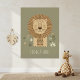 Complétez votre décoration safari avec cette charmante et réconfortante impression de portrait de lion. L'œuvre d'art présente un lion doux et stylisé entouré d'une magnifique crinière rayée. Placée sur un fond vert olive atténué et accentuée par des éléments botaniques subtils, la conception est à la fois moderne et douce. La légende positive, "STRONG & SWEET" (Fort et doux), fait de cette décoration une pièce inspirante pour encourager la bravoure et la gentillesse chez un jeune enfant. Ce poster est un excellent choix pour une chambre ou une salle de jeu neutre ou sur le thème de la jungle. Fait partie de notre collection coordonnée 'Kid's Safari Decor'. Remarque : conception adaptée à partir de contenu généré.