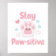 Need a dose of adorable optimism? This "Stay Paw-sitive" graphic is here to help! Featuring a cute pink paw print surrounded by sweet hearts, this charming and funny pun serves as a delightful reminder to look on the bright side. It's a perfect, cheerful message for any dog or cat lover.