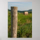 Le charmant Rural Farm Fence Post et Hay Bales Poster Print présente une photo de campagne d'un poteau de clôture en bois patiné et des rouleaux de foin dans un champ situé dans l'Illinois rural en dehors de Galena. Cette affiche rustique est un cadeau unique et réfléchi pour les amoureux de la ferme ou de la campagne.