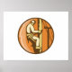 Illustration d'un poste de service d'électricité d'un ouvrier de ligne électrique d'escalade avec boulon éclair placé à l'intérieur du cercle fait en style rétro.