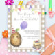 A Little Sweet Potato. Watercolor kids birthday party. Watercolor cute potato kawaii in birthday hat, cake with berries, purple balloon, festive garland of flags. Beige-brown cage background.