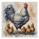 Un poulet à l'aquarelle avec des poussins représentés contre un arrière - plan doux et flou. Les couleurs naturelles rehaussent l'aspect vivant.