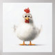 Une poule comique et charmante à la caricature avec des plumes blanches moelleuses, de grands yeux expressifs et une apparence ludique. Cette poule illustrée numériquement un peigne rouge vif, un mignon bec orange et une expression amusamment étonnée, ce qui la rend parfaite pour l'animation, l'image de marque ou les illustrations de pâques.