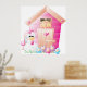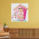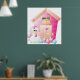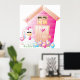 Un poulet à l'extérieur de son poulailler rose avec quelques fleurs. Ce design semble vraiment efficace sur ces Poster