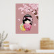 Poster Poupée Kokeshi Printemps - Cute Geisha Japonais en