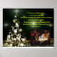 Pour nous un enfant est né - Isaïe 9:6-7 Ce dessin présente un arrière - plan de sapin de Noël avec des lumières et des étoiles éclairant cette scène avec la scène de la nativité et le verset de la Bible d'Ésaïe 9:6-7.
