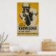 Affiche WPA vintage faisant la promotion de l'utilisation de la bibliothèque, montrant un homme dans une pose basée sur le "penseur" de Rodin.
