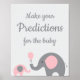 Affichez nos prédictions sur le thème de l'éléphant rose et gris pour le signe bébé pour vous assurer que vos invités savent laisser leurs prédictions pour le nouveau bébé. N'oubliez pas de chercher nos cartes de prévision de coordination vendues séparément.