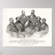 À la fin de la guerre civile américaine, seize Noirs ont siégé au Congrès pendant la reconstruction. Les 41ème et 42ème Congrès incluaient des membres noirs pour la première fois dans l'histoire américaine. Cette affiche est une reproduction de la lithographie commémorative de 1872 publiée par Currier & Ives pour représenter le sénateur Hiram Revels of Mississippi, et les représentants Robert DeLarge de Caroline du Sud, Jefferson Long of Georgia, Benjamin Turner of Alabama, Josiah Walls of Florida, et Joseph Rainey et Robert B. Elliott de Caroline du Sud. Cette affiche est une source de valeur pour les enseignants et les éducateurs pour la programmation du Mois de l'histoire des Noirs et pour les écoliers à domicile.