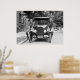 Vieille photo de jeunes femmes, en uniforme assis sur les avant des défenses de la voiture antique, années 1920.